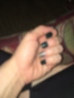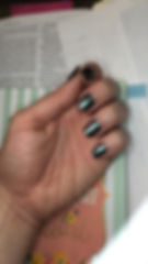 As much as I hated my blue nails from January, I actually loved both sets of this month’s nails. Maybe it’s the Slytherin in my heart but deep shades of green are just gorgeous. The reason I chose to do two sets is because the first polished didn’t really photograph as being green. This color is fun because it’s iridescent but no matter how I tried, it always looked purple in the pictures which is why the TERRIBLE picture is being posted. It was the only time the light semi-cooperated to look green.